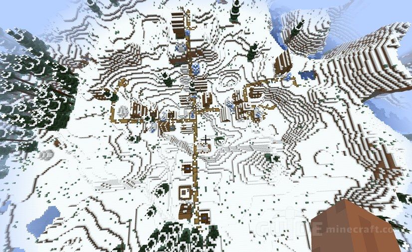 A good “winter” seed, the spawn point is located directly in the snowy village, there is also an igloo nearby. Within a radius of just 500 blocks there are four more villages and one more igloo. And this is just the beginning of the incredibly huge tundra, which stretches for more than 9000 blocks and contains dozens of interesting places.